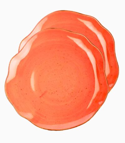 Gi borddekkingen et fargerikt og elegant preg med denne unike dekketallerkenen. Tallerkenen har en vakker korallrød glasur med delikate, håndlagde ujevnheter som gir et levende og organisk uttrykk. Den bølgende kanten tilfører en moderne og kunstnerisk touch, samtidig som den gir et eksklusivt preg til enhver anledning – enten det er festmiddag eller en hyggelig hverdagsmiddag.