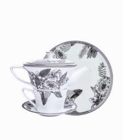 Gi te/kaffe-stunden et snev av luksus med Tafo Te/kaffesett – et delikat 4-delt sett med tekanne, kopp og asjett i utsøkt porselen. Dekoren i grå-grafitt og den skimrende platinumkanten gir et raffinert og tidløst uttrykk som passer både til hverdag og fest.